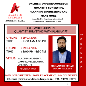 Aladdin Academy is hosting a free webinar and workshop on “Quantity Surveying.” This event is designed to assist Civil Engineers in transitioning and advancing their careers in the construction industry through comprehensive placement and training support.